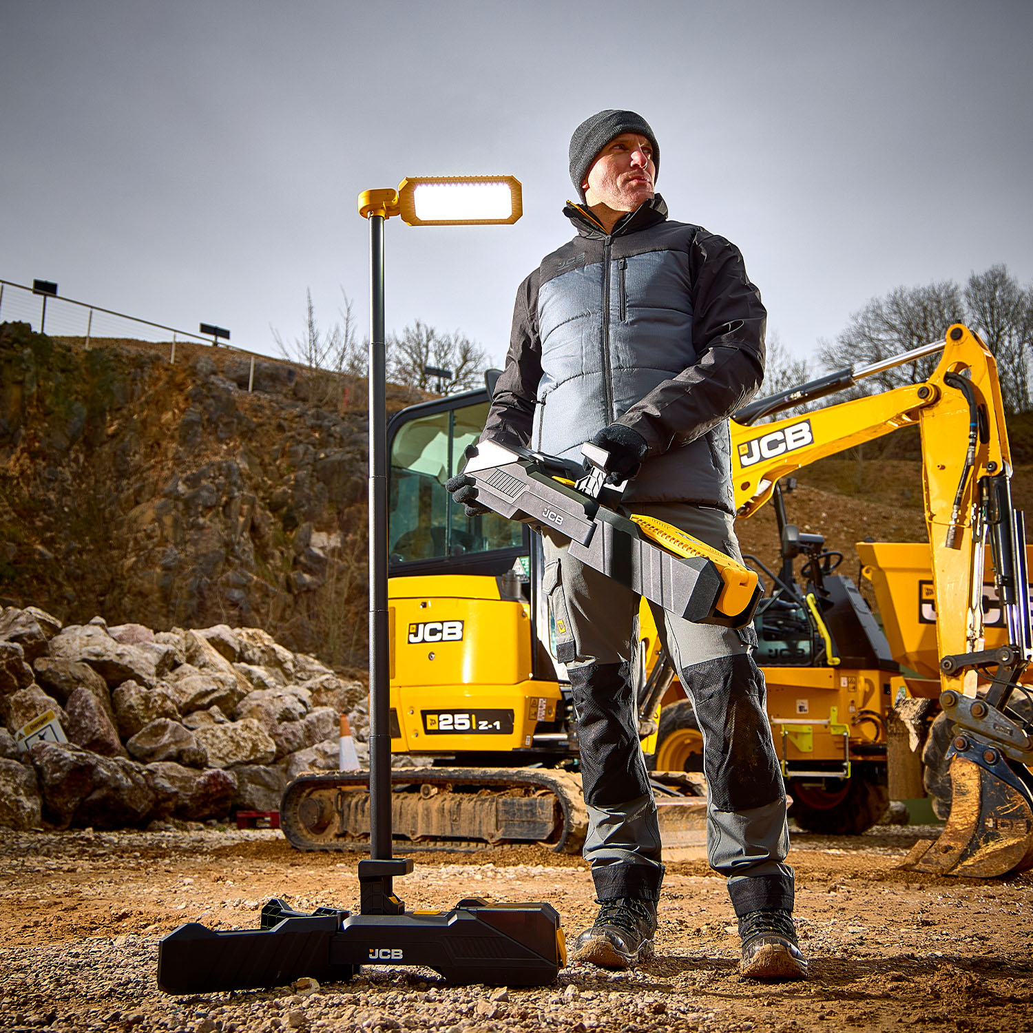 A compact and versatile 6000 lumen site light designed for construction and trades. Powered Your Way – using your 18V tool battery, it offers flexibility and durability for any job.