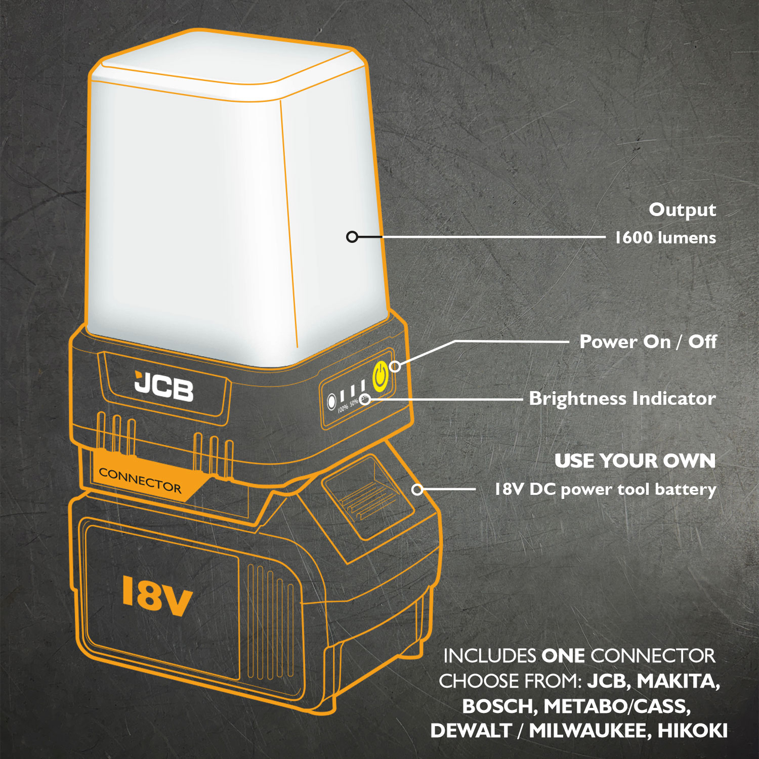 A tough and powerful 1600 lumen compact, bright area light designed for construction and trades. Powered Your Way – using your 18V tool battery, it offers flexibility and durability for any job.